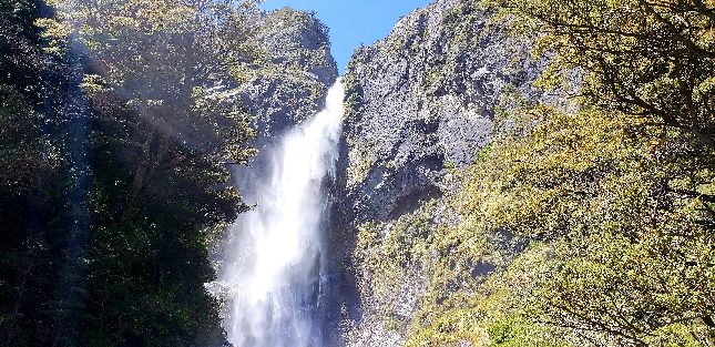 Высокий горный водопад в национальном парке Артурс-Пасс на Южном острове Новой Зеландии среди скал и леса — природная достопримечательность региона золотых рек и маршрутов приключенческих туров. Авторские туры по добыче золота в Новой Зеландии. Связаться с гидом: WhatsApp / Telegram +642109071479.