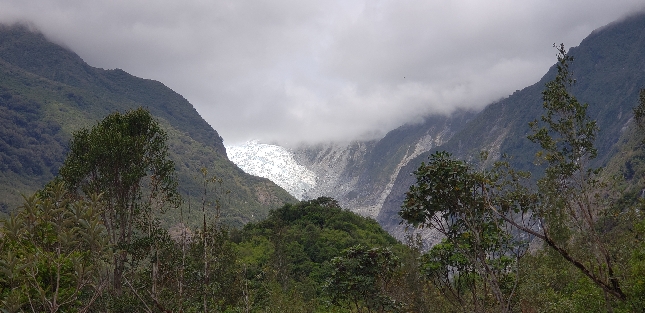 Горный ледник среди лесистых склонов Южного острова Новой Зеландии — дикая природа и высокогорные ландшафты региона золотых рек и маршрутов приключенческих туров. Авторские туры по добыче золота в Новой Зеландии. Связаться с гидом: WhatsApp / Telegram +642109071479.