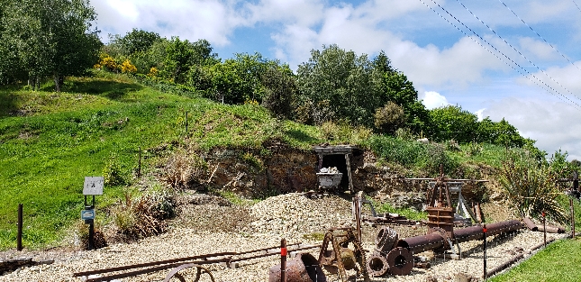 Историческая золотая шахта с горным входом, вагонеткой и оборудованием добычи в Новой Зеландии — наследие золотой лихорадки и места проведения туров по добыче россыпного золота. Авторские туры по добыче золота в Новой Зеландии. Связаться с гидом: WhatsApp / Telegram +642109071479.