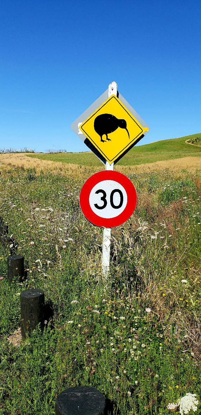 Дорожный знак с птицей киви и ограничением скорости в сельской местности Новой Зеландии — символ дикой природы страны на маршрутах путешествий к золотым регионам и природным локациям. Авторские туры по добыче золота в Новой Зеландии. Связаться с гидом: WhatsApp / Telegram +642109071479.