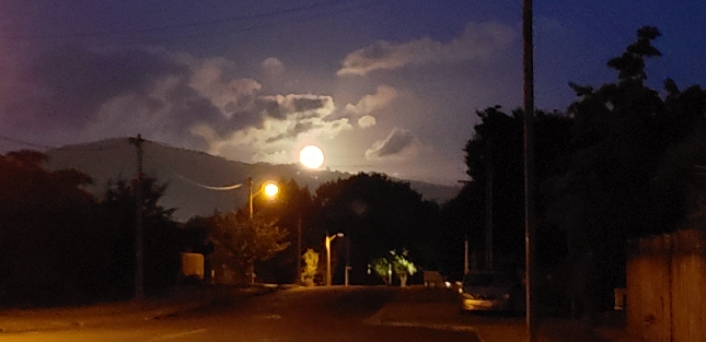 Полная луна над холмами и тихой дорогой в Новой Зеландии — атмосферные ночные пейзажи и путешествия по живописным регионам страны. Туры по лучшим местам Новой Зеландии. Связаться с гидом: WhatsApp / Telegram +642109071479.
