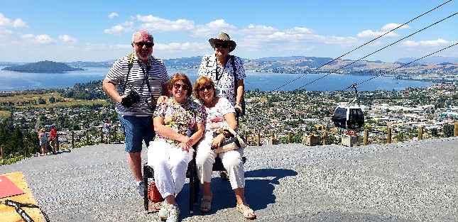 Туристы на обзорной площадке Skyline Rotorua с панорамным видом на город Роторуа и озеро в Новой Зеландии. Канатная дорога, вулканический регион и лучшие смотровые точки страны. Индивидуальные экскурсии и туры по лучшим местам Новой Зеландии: Роторуа, озёра, гейзеры и природные достопримечательности. Бронирование: WhatsApp / Telegram +642109071479.