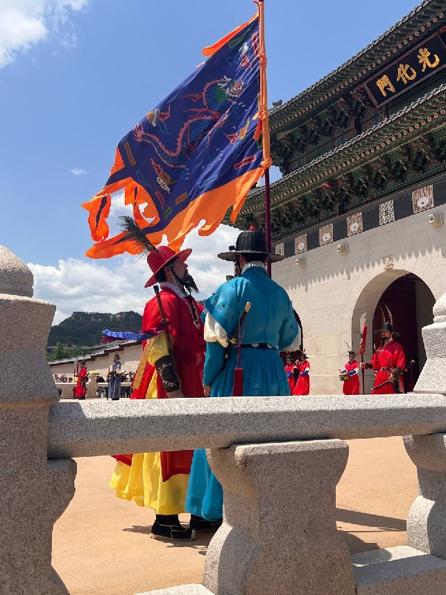 Смена караула во дворце Кёнбоккун ведёт свою историю со времен династии Чосон. Сейчас смену проводят два раза в день для туристов.