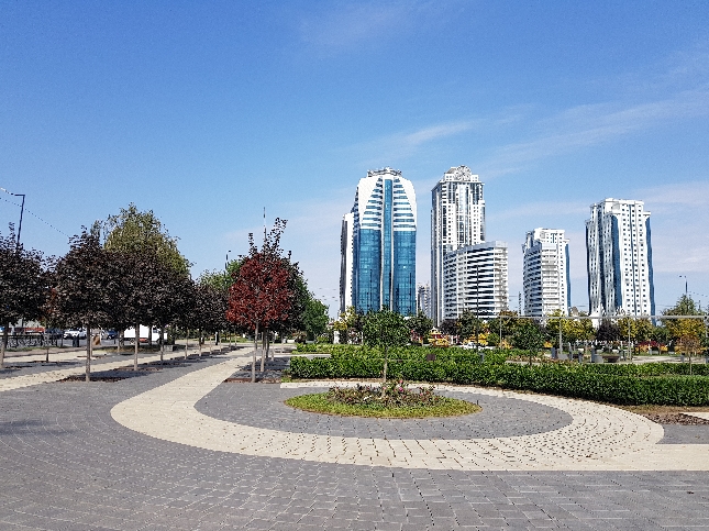 вид со стороны цветочного парка на Грозный-сити