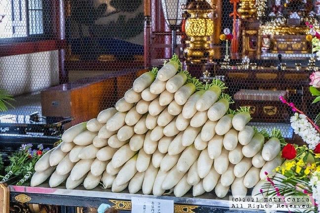 Этот храм называют также «Храмом редьки». По легенде, святой монах Кобо Дайси вылечил императора с помощью дайкона, после чего редька стала здесь символом здоровья и защиты от неудач. Также храм считают храмом покровительства мужской силе и брака.