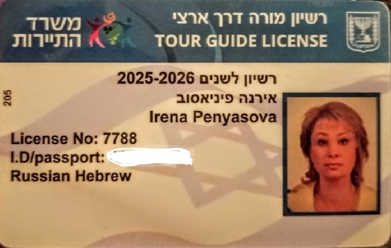 Лицензии экскурсовода были в России, в Крыму и теперь каждые 2 года обновляю лицензию министерства туризма Израиля.