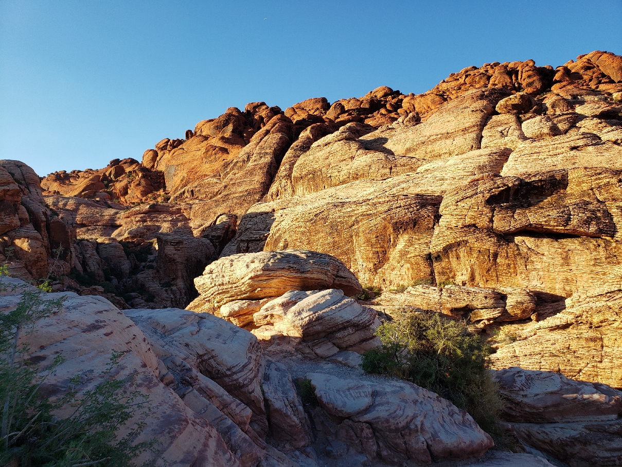 Каньон Красных Скал (Red Rock Canyon) находится всего в двадцати пяти милях к северо-западу от пустынных земель Mojave Desert. Лучше всего наведываться сюда весной и осенью, когда не так жарко. Зимой здесь случаются заморозки и порой снегопады. Частые скачки температуры тоже не редкость — после ночных заморозков к полудню стрелка термометра уже колеблется на 60 °F. Летом же стрелка упорно держится на отметке 100.
