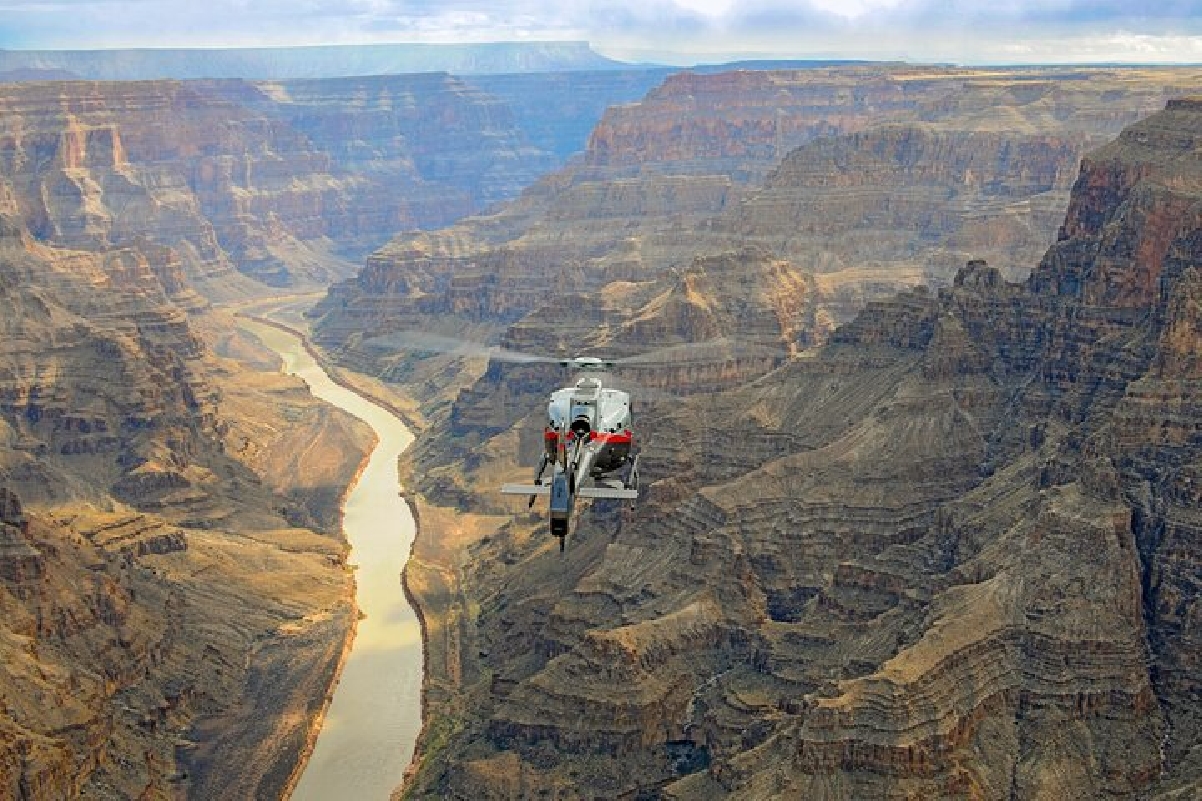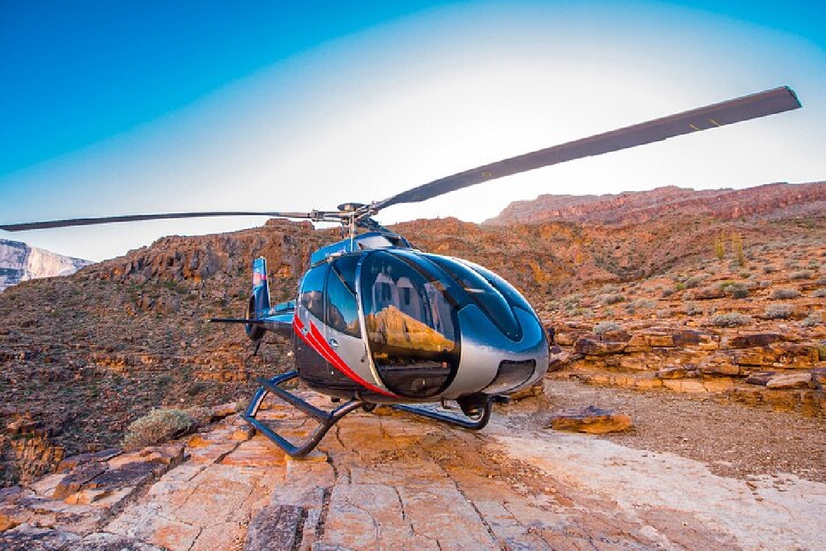 -Полет на вертолете на Гранд-Каньон, приземление на дно обширного ущелья Каньона.