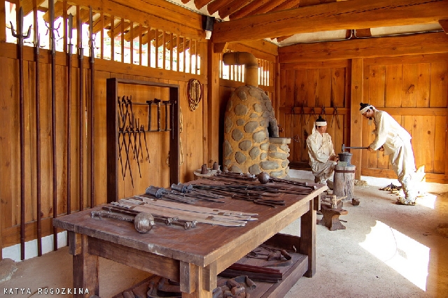 В строениях крепости показаны местные ремесла - гончарное, перламутровое, оружейное...