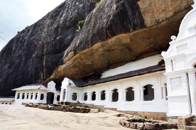 (Дамбулла - огромная изолированная скала высотой более 110 м, на которой находится построенный в I веке до н.э. Золотой Пещерный Храм, состоящий из 5 пещер. каждая из пещер имеет свое собственное имя: Девража Вихарая, Махаража Вихарая, Маха Алут Вихарая, Пашчима Вихарая, Пратима-Девража Вихарая. Здесь хранится самая большая коллекция статуй Будды (200 изображений!), с восхитительными образцами храмовой живописи - фресками, украшающими стены и потолок общей площадью 1824 кв. м.