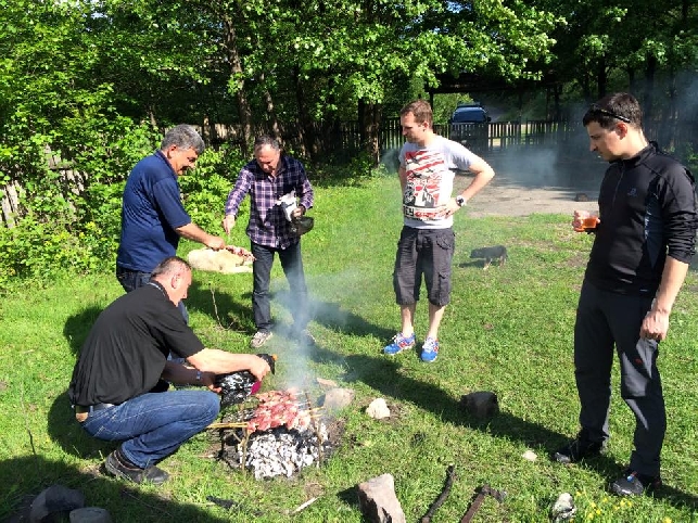 Родина Хванчкари, лобиани, шкмерули(ципленок в чесноковом соусе), и конечно сюрпрызы.