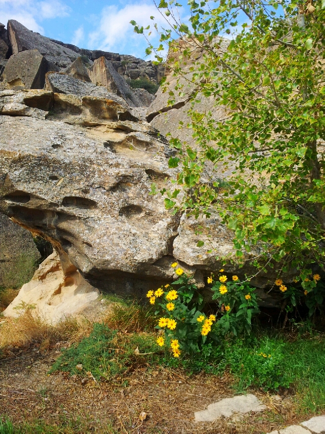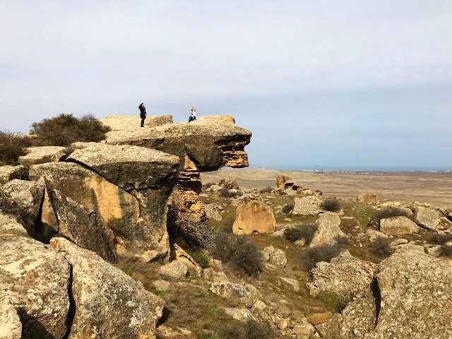 Далее мы на автомобиле поднимемся к горным массивам, где располагаются пещеры, служившие убежищем древним людям. На стенах этих пещер и прилегающих скалах высечены изображения (петроглифы) людей, животных, сцены охоты и различные знаки. Усилиями археологов было обнаружено более 6000 рисунков, древние жилища - пещеры и стоянки, около 40 курганов, более 100 тысяч предметов материальной культуры. Наиболее древние рисунки относятся к эпохе мезолита, наиболее поздние к средневековью. Однако предполагается, что жизнь существовала здесь и ранее.