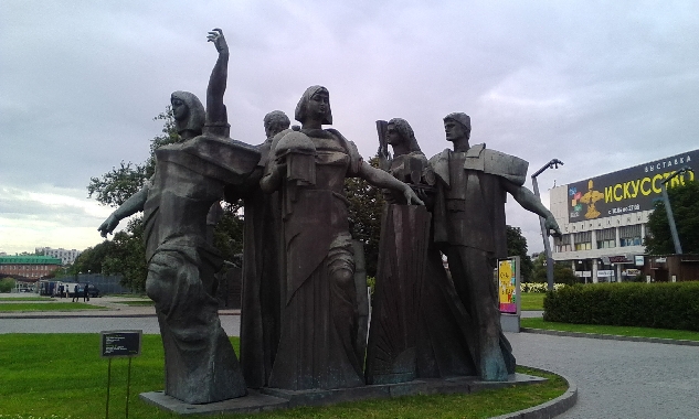 Скульптурную композицию «Торжество труда» работы скульптора М.Ф. Бабурина у входа в Парк Музеон,