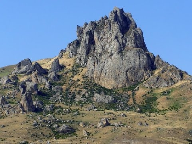 Величественный утес высотой 540 метров, имеет оригинальную форму: острые скалистые зубцы и прядь похожи на длинные пальцы ладони, протянутой к небу. Многие путешественники XII – XV веков упоминали в своих трудах Бешбармаг, называя его Хазровой скалой. Его образование относят к юрскому периоду.