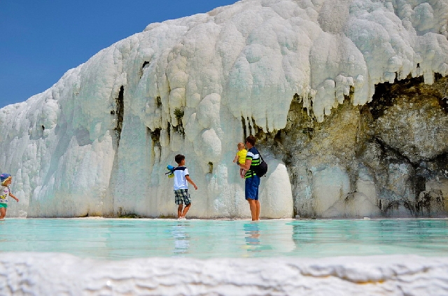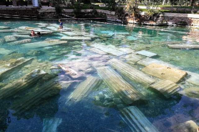 Памуккале — объект мирового культурного наследия ЮНЕСКО, привлекающий туристов своей красотой. Помимо источников, тут есть водоемы с белоснежными террасами, образованными травертином. Рядом расположен античный город Иераполис с хорошо сохранившимися театром, храмом, построенным в честь Аполлона, некрополем, ваннами Клеопатры.