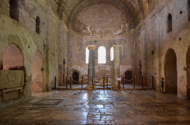Что же касается церкви, в которой служил святитель Николай Чудотворец, она была построена в IV веке в виде небольшой часовни. В разные периоды (начиная с VI века и до XIX века) церковь была перестроена 4 (четыре) раза - появились фрески, напольная мозаика, дворик, монастырь, купол и колокольня. Считается, что Святой Николай был захоронен в этой церкви и оставался там вплоть до 1087 года, пока итальянские купцы не вывезли мощи святого в Бари (Италия).