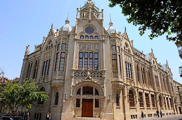 (снаружи)Здание в форме свернутого ковра стало настоящим архитектурным символом Баку. Мы остановимся здесь, чтобы полюбоваться необычным фасадом и сделать фото.