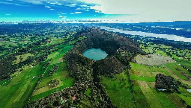 Вторая часть экскурсии - поездка на священное озеро муисков ГУАТАВИТA, с которым связана легенда об Эль Дорадо.Оно расположено в 50 километрах к северо-востоку от столицы страны Боготы в горах Кундинамарка. Оно почти круглой формы и находится в кратере потухшего вулкана на высоте 3100 метров над уровнем моря. Гуатавита имеет диаметр около 1,6 км и окружность около 5 км. В 1965 году колумбийским правительством озеро Гуатавита было объявлено национальным наследием.Попав на территорию современной Колумбии, конкистадоры узнали об индейском обычае, который породил легенду о богатейшей стране золота Эльдорадо. По легенде, правитель индейцев обмазывался смолой или глиной, затем несколько помощников через трубочки покрывали его золотым песком. Он превращался в эльдорадо (с исп. "позолоченный"). Потом Золотой Повелитель вместе с несколькими спутниками плыл на загруженном драгоценностями плоту на середину озера. Там они бросали в воду золотые украшения как жертву богам, а потом бросались в воду и плыли к берегу. При этом с правителя смывалась "золотая" кожа. Судя по всему, подобный обычай действительно существовал, но проводился редко - во время коронации царя-жреца. Испанцы были так поражены этими рассказами, что значительно преувеличили масштабы обычая: церемония в рассказах о Эльдорадо стала чуть ли не ежедневной, а золотая пыль - чем-то вроде царской одежды. Конечно, такая интерпретация делала количество похороненного в озере золота просто огромной, равно огромной должно быть количество жёлтого металла в стране, где золото так щедро тратится, это и стало основой легенды о стране Эльдорадо. Существуют доказательства, что подобный обряд проводился в доиспанские времена на о.Гуатавита: в озере и на его берегах было найдено немало золотых изделий чибча-муисков. Часть из этих находок хранится сейчас в Боготе в основанном в 1939 году Музее Золота.