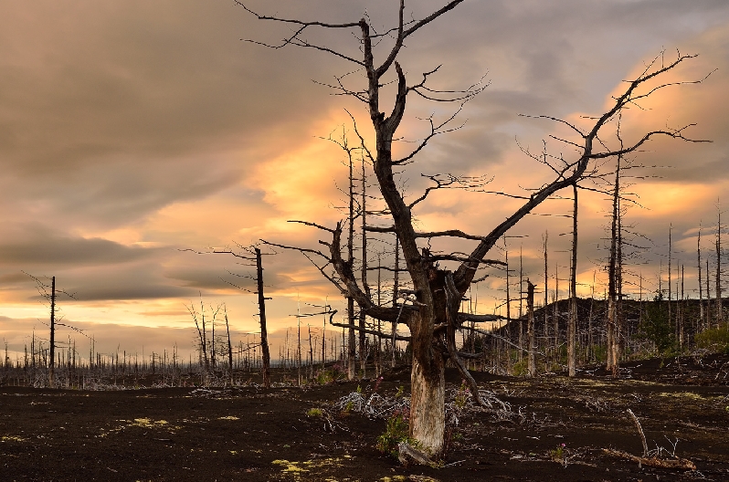 Завтрак. Сбор лагеря. Переезд на территорию уничтоженную облаком раскаленного пепла в период извержения 1975 года и известную как "Мертвый Лес". Зловещую атмосферу апокалипсиса создают погибшие деревья, запах серы и покрытая пеплом земля. Восхождение на шлаковый конус Горшкова от стоянки «Северный прорыв». Внимание приковывают виды на черную пустыню, покрытую пятнами желтого лишайника. По мнению специалистов окружающий ландшафт моделирует поверхность спутника Земли. В 70 – е годы прошлого столетия здесь располагался полигон для испытания луноходов. Обед на маршруте. Далее отправление к Южному прорыву. Прогулка по кратеру «Звезда» в осыпающихся породах которого расположены пещеры старого лавового потока. Возвращение в Эссо. Размещение в гостевом доме.