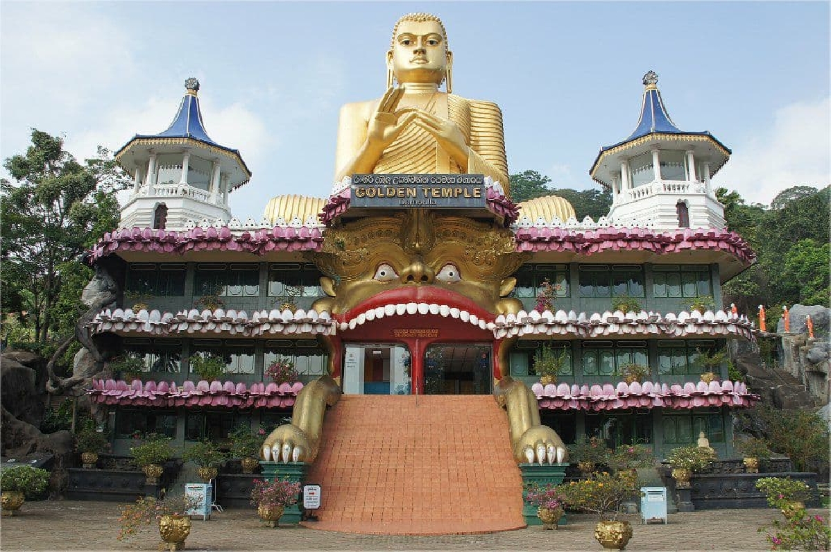 Золотой храм Дамбулла - буддийский пещерный храм. Храм построен в I веке до нашей эры, его залы высечены в скале. Храм - это священное место паломничества уже на протяжении 22 веков. Храмовый комплекс состоит из 26 пещер, они расположены на высоте 350 метров, и из многочисленных ниш, их поверхность расписана буддийской настенной живописью площадью 2100 м?. 153 статуи Будды сохранились в разных пещерах. Золотой храм Дамбулла - один из семи участков мирового наследия UNESCO на Шри-Ланке.