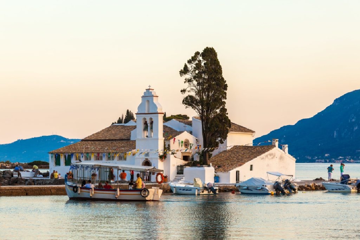 Ахиллеон — дворец австро-венгерской императрицы Елизаветы, островок Понтикониси и монастырь Влахерна у берегов мыса Канони одни из самых известных и фотографируемых достопримечательностей Керкиры.