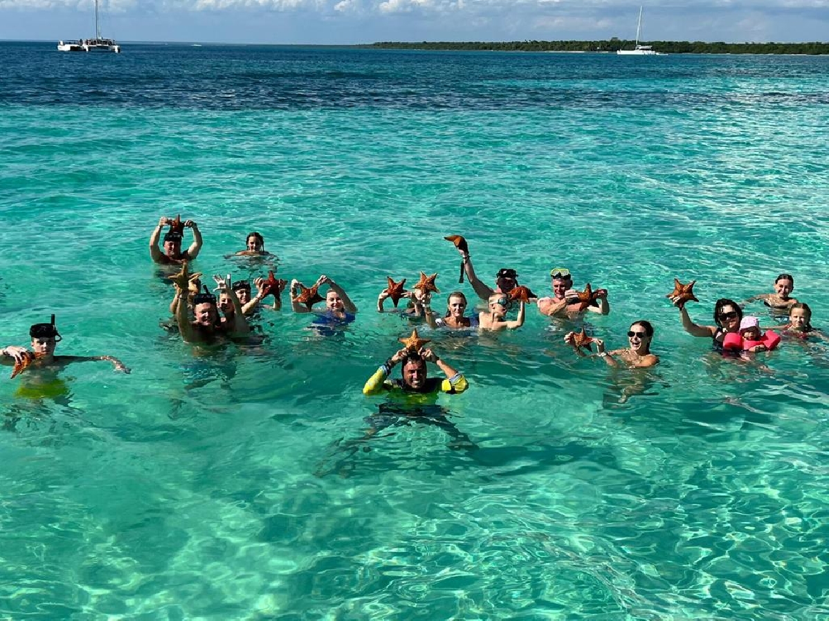 По пути вас ожидает остановка возле кораллового рифа, где можно будет поплавать с масками и трубками и насладиться красотой подводного мира. Так же будет остановка в натуральном бассейне Карибского моря, где у вас будет уникальная возможность поплавать с морскими звёздами, а также сделать чудесные фотографии с ними.