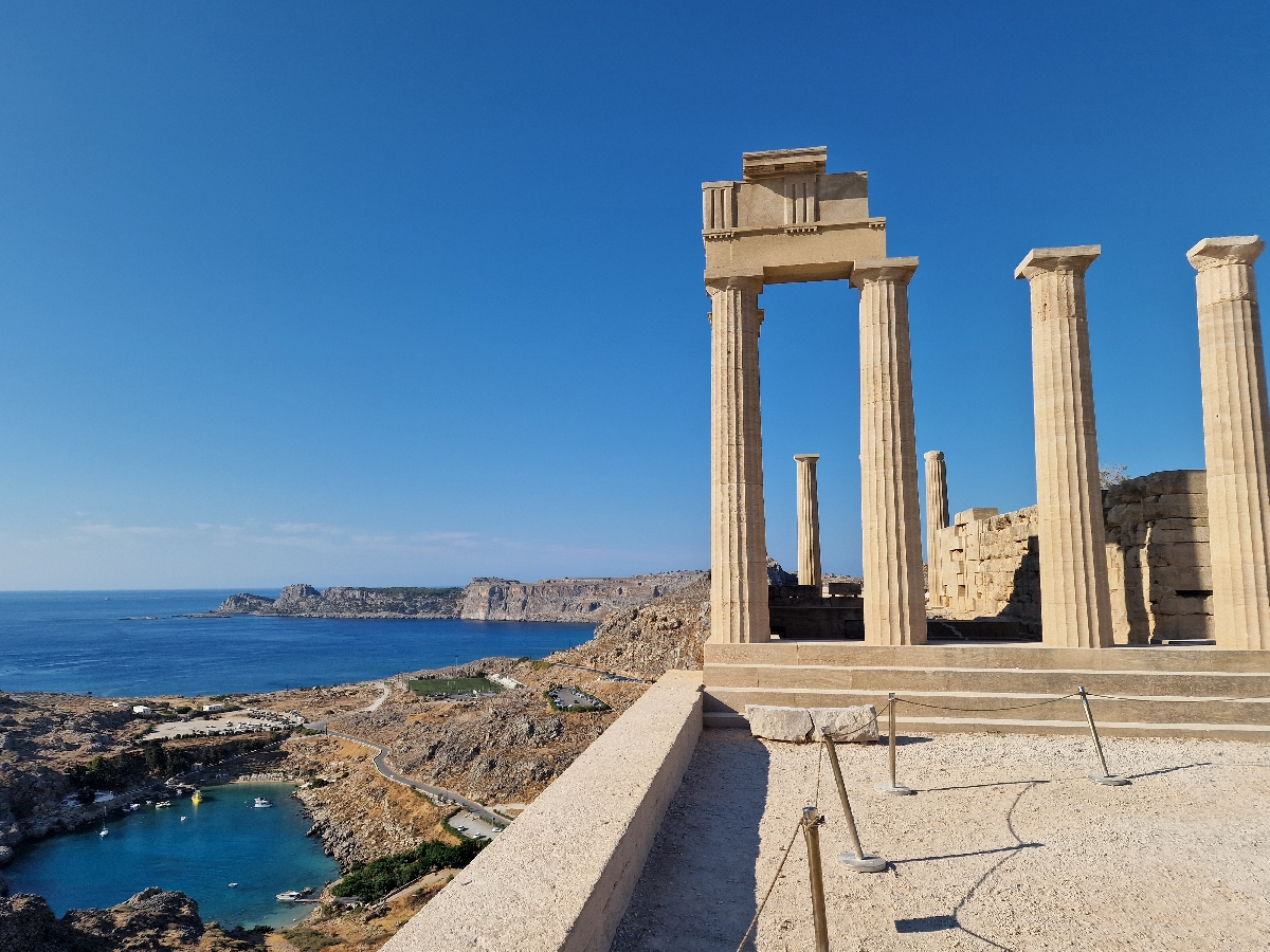 В Линдосе мы поднимемся на Акрополь, где познакомимся с историей архитектуры, почитанием богинь и жизнью великих людей, оставивших след на острове. С вершины открываются панорамные виды на бухту Апостола Павла, известную как «лазурное сердце Родоса» — идеальное место для фото и впечатлений.