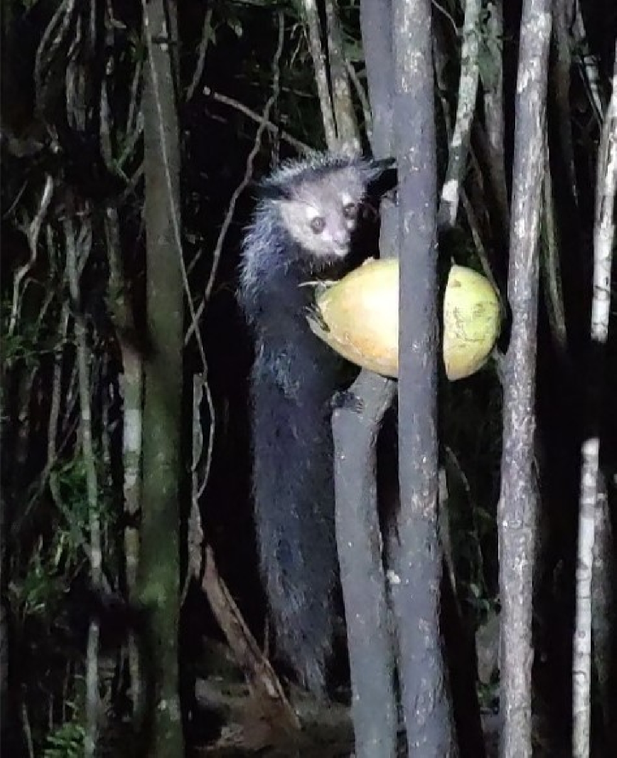Вечером в 17.30 мы отправимся (на лодке) чтобы увидеть ночного лемура, обитающего только здесь. Лемур AYE AYE имеет длинный палец с очень острым ногтем, которым расковыривает кокос и достает сладкую мякоть.