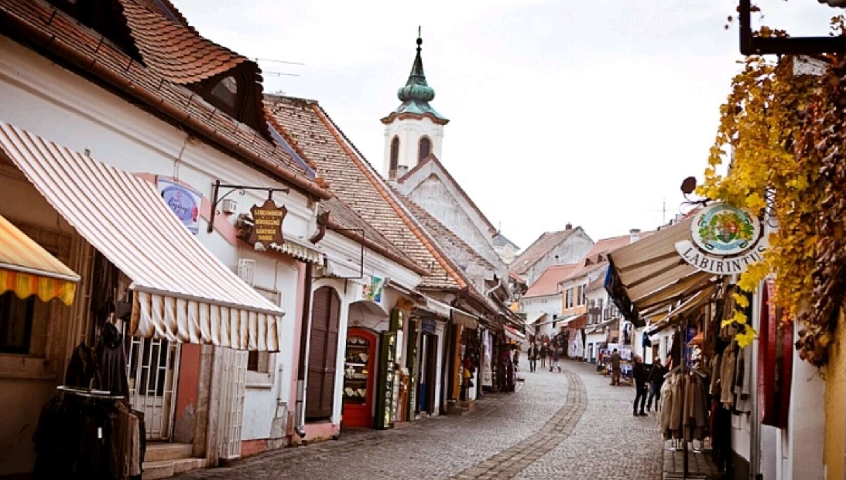 Город Сентэндре расположен в излучине Дуная в 18-ти километрах от Будапешта — центр венгерского православия, живописный городок художников, ремесленников и народных мастеров, с узенькими извилистыми улочками, множеством сувенирных магазинчиков, галерей, трактирчиков с венгерской национальной кухней, с винным подвалом Национального музея венгерских вин, этнографическим музеем-сканзеном под открытым небом, а также знаменитым музеем марципана.