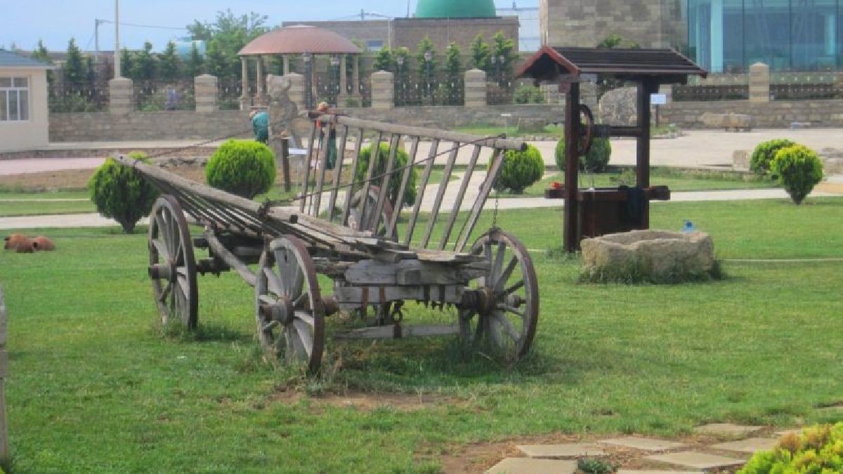 Есть на территории музея и настоящая кузница со всеми полагающимися инструментами и материалами. Есть модель базара, с прилавками и весами. А еще Малахат ханум показала нам так называемый "хырман" - площадку, на которой мололи зерно. Для молотьбы использовали полено - "вель", которое привязывали к лошади или ослу. Хырман считался священным местом и символом изобилия.