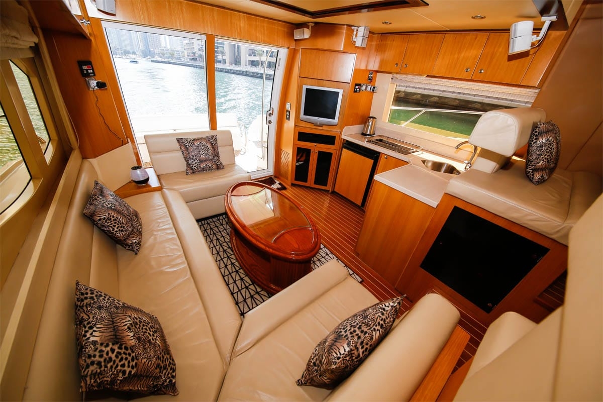 Яхта идеально подойдет для большой семьи, чтобы не спеша прокатиться вдоль береговой линии и полюбоваться захватывающими видами, открывающимися на Дубай с воды, для романтического ужина или большой компании друзей