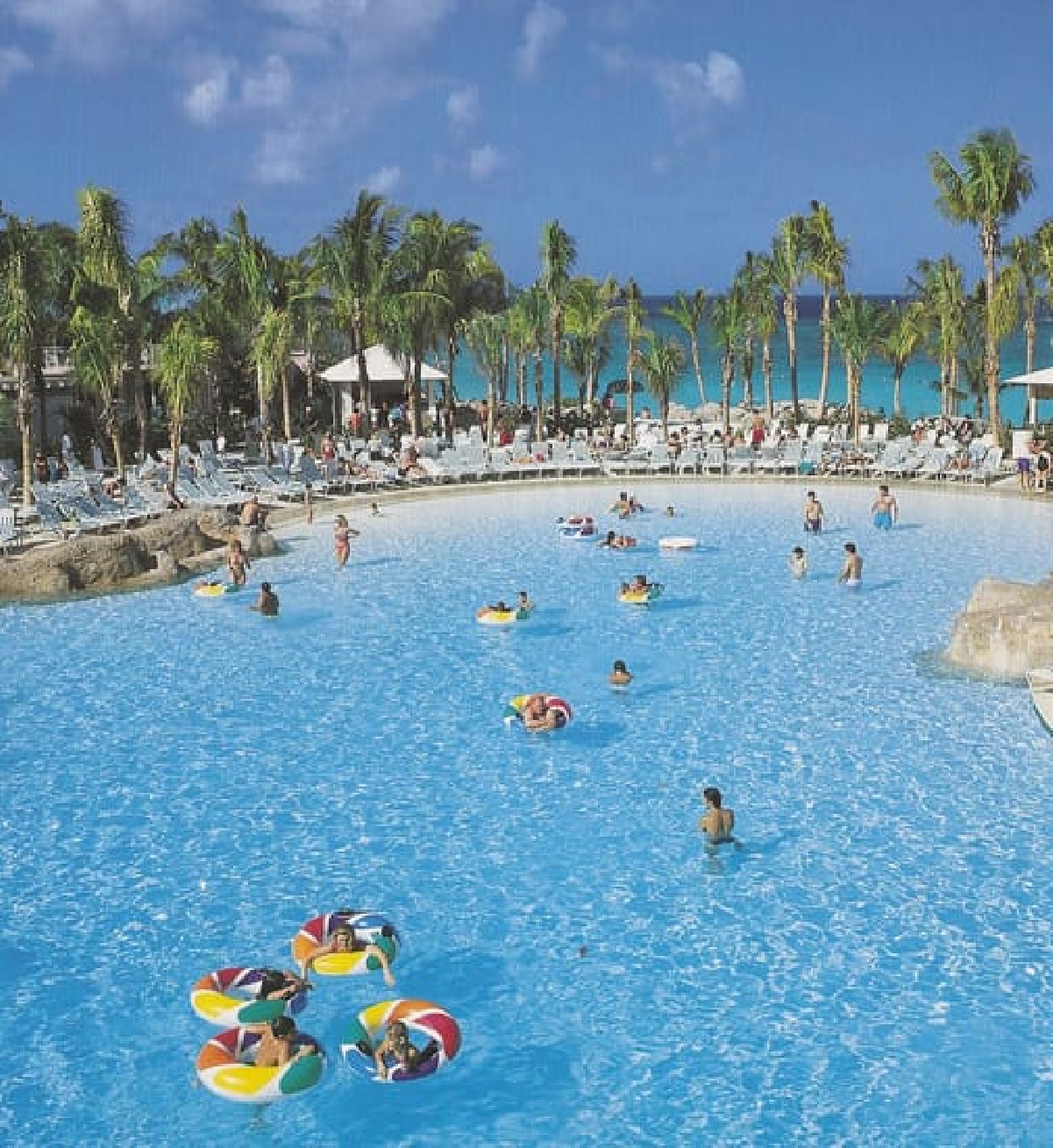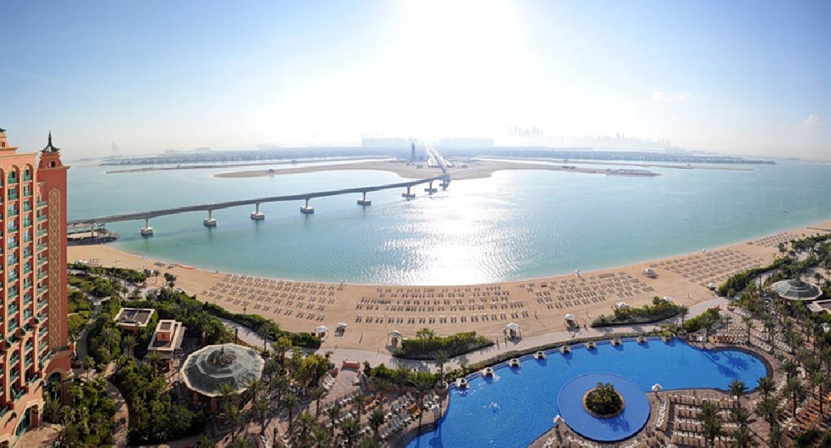 Просторный парк выполнен в стиле Атлантиды с большим количеством бассейнов, пальмовых рощ и цветущей зелени.