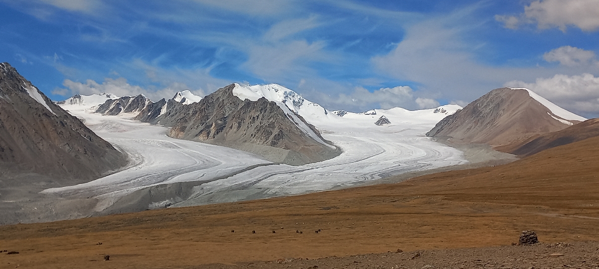Наутро начинаем движение к леднику Потанина к базовому лагерю на перевале 3 140 м., у массива Табын-Богдо-Ола. С перевала открывается отличная горная панорама во главе с вершиной Куйтэн-Уул (Найрамдал) 4374 м высшей точкой Монголии. С массива Таван-Богдо-Ула стекают крупнейшие на всем Алтае ледники Потанина (19 км) и Александры (10,8 км).