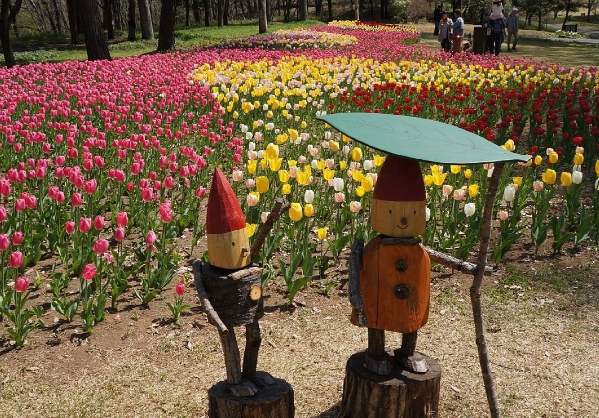 - Море цветов — поля тюльпанов, немофилы и сакуры весной, гортензии и лилии летом, космея и клёны осенью, ранние сливы и лесные инсталляции зимой.