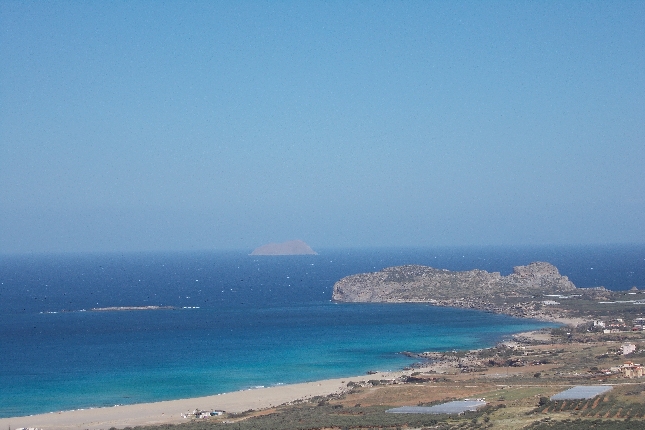 Следуя из Кисамоса в Фаласарну мы пересекаем границу одного моря-Эгейского и поподаем на Средиземное. Вы сразу заметите разницу по цвету воды и оттенкам. В ясную погоду можно различить очертания островов Китира и вершину горы Тайгета в Пелопоннесе.