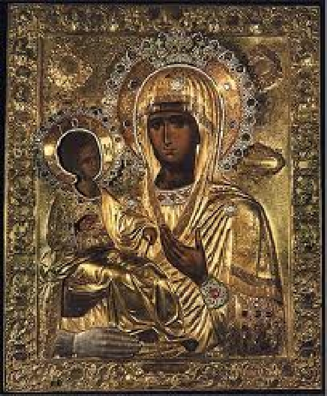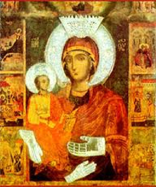 Это старинная чудотворная икона с тридцатью двумя четырехугольными перегородками с мощами святых. В ее верхней части есть надпись «Одигитрия» («Путеводительница»). Есть основания полагать, что первоначально икона принадлежала знатному роду или монастырю. Согласно древнему преданию, она была подарена Рильскому монастырю женой турецкого султана Мурада I (1319–1389) и сестрой царя Ивана Шишмана, которую в народе звали «Мара – белая болгарка». Местное население почитает ее как исцелительницу от тяжелых болезней и охранительницу от эпидемий.