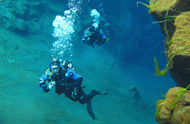 Исландия - просто рай для любителей всевозможных экстремальных развлечений, в том числе – дайвинга. Тут можно погрузиться под воду в разлом между двумя континентами. В национальном парке Тингветлир находится одно из популярных в мире мест дайвинга — "Сильфра" на озере с прозрачной водой. Евразийская и североамериканская литосферные плиты непрерывно двигаются, отходя друг от друга со скоростью1,5- 2 см в год. После серии землятрясений дно покрыли трещины, разломы, каньоны, заполненные кристально чистой пресной водой от таящих ледников.Уникальная видимость под водой до 100 метров! Организовано экипировка, оборудование, инструктор PADI, трансферы.