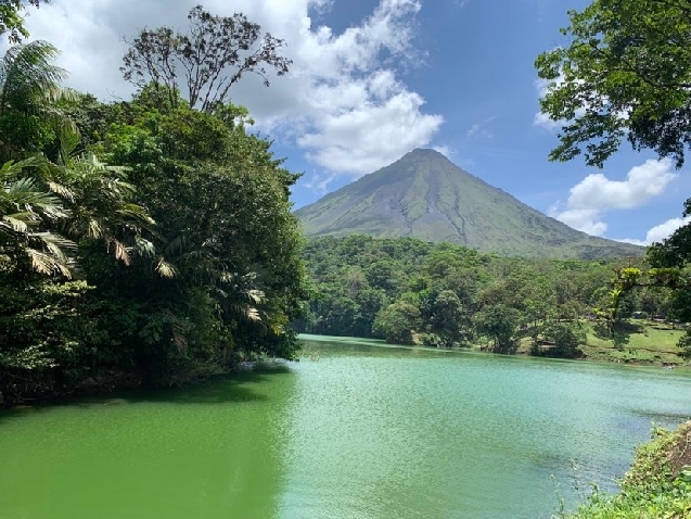 Потрясающий вид с лагуны на вулкан Ареналь