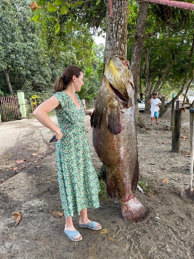 Туристка из Бразилии поймала рыбу первый раз в жизни!