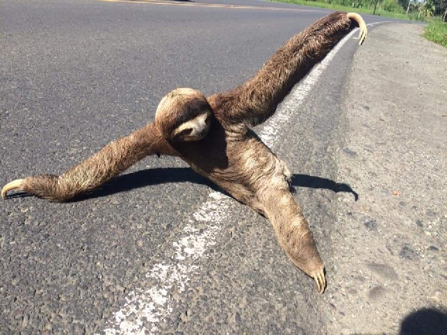 Ленивца переползающего дорогу,пришлось спасать самим туристам, по дороге на экскурсию на вулкан Ареналь