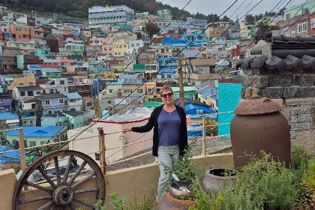 прогулка по культурной деревне Камчон , известной своими цветными домиками и необычными улочками