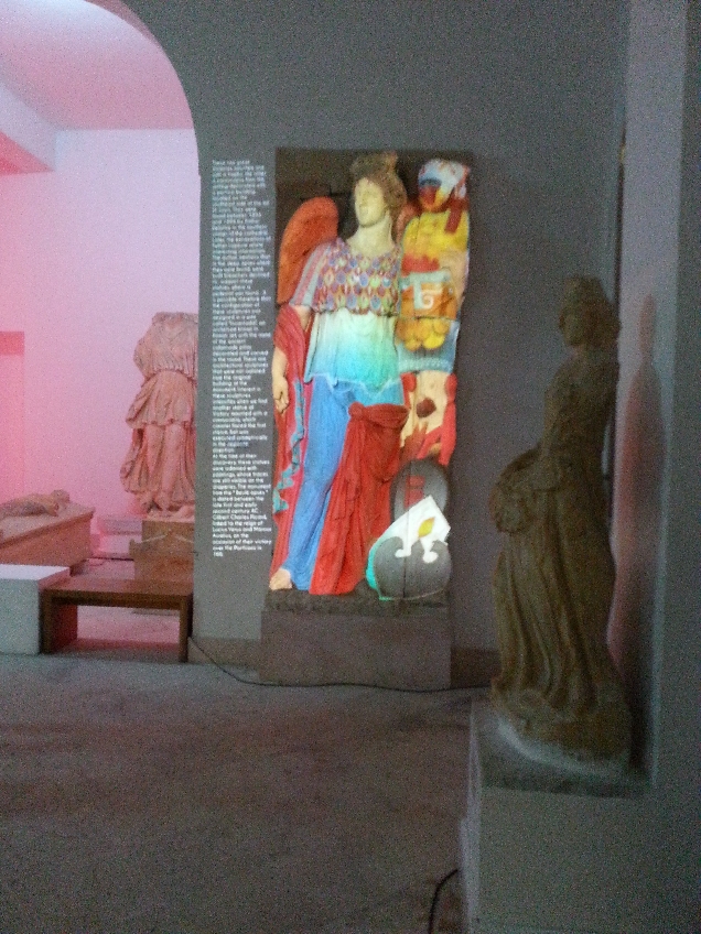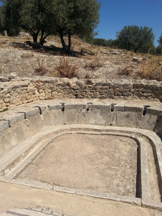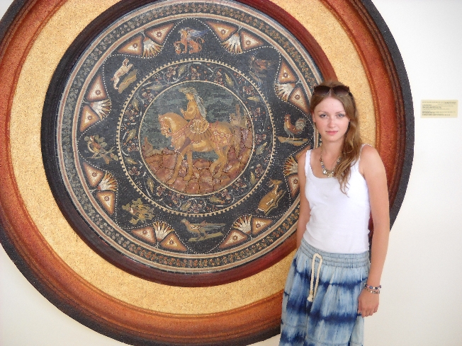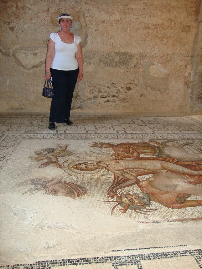 подземные римские виллы.Напольная мозаика Амфитрита богиня моря, супруга Посейдона. Владыка моря Посейдон однажды увидел ее, когда она водила хоровод со своими сестрами на берегу острова Наксос. Он пленился ею, но Амфитрита хотела оставаться девственницей и укрылась от ухаживаний у титана Атланта. По одной из версий мифа, Посейдон похитил ее, по другой - она скрылась от его любви в одной из пещер Океана. Её примеру последовали и другие нереиды. Посейдон послал на розыски Амфитриты дельфина, который нашел её и столь дипломатично повел дело, что нереида согласилась стать женой Посейдона (в благодарность Посейдон поместил дельфина среди звезд;