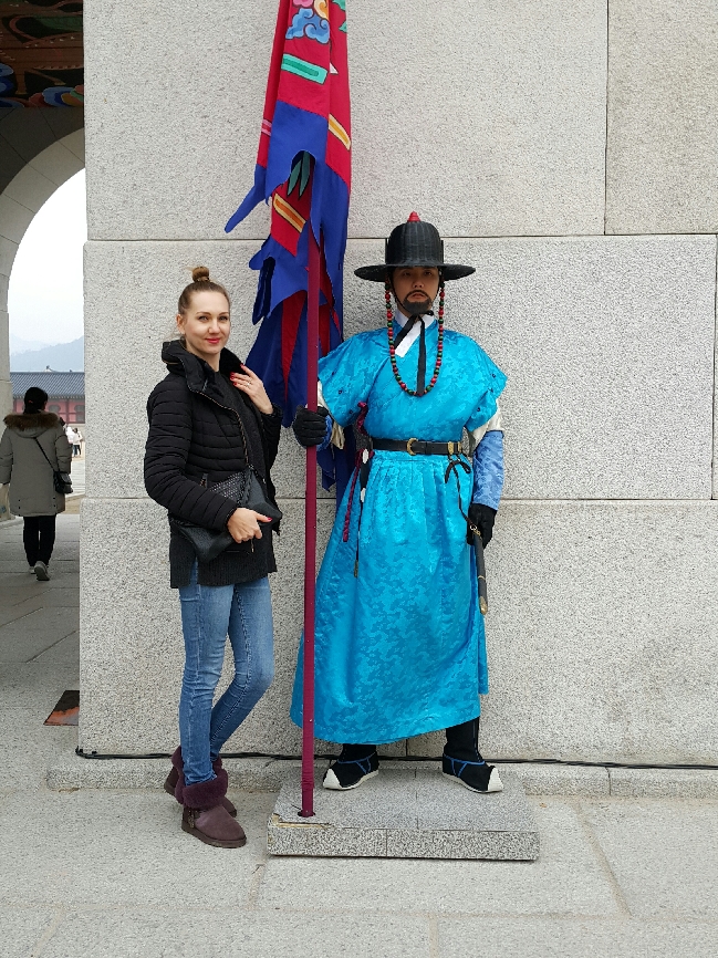 Стража у королевского дворца. Дворец Кенбоккун в центре Сеула,смена караула и я.Можно сделать удивительные фото на территории дворцов.