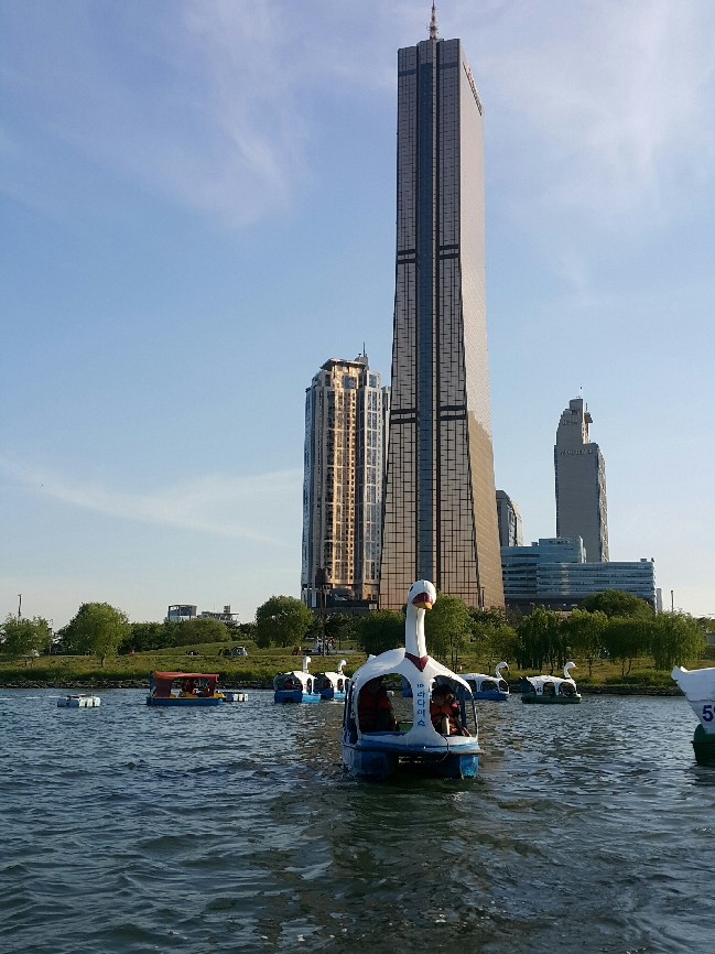 Хотите покататься на волнах реки Хан? Посмотрите какои вид ! Вид на Сеул, на мосты,на здание 63 билдинг. Катамараны с педалями и на моторе для всеи семьи. Весело и разнообразно