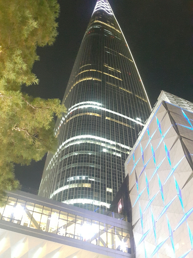 Ночнои небоскреб и вид на ночной город. Стеклянный пол на высоте свыше 450 метров.